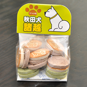 可愛い秋田犬を型どった、上焼・あん粉・抹茶の三種類の味が楽しめる諸越。